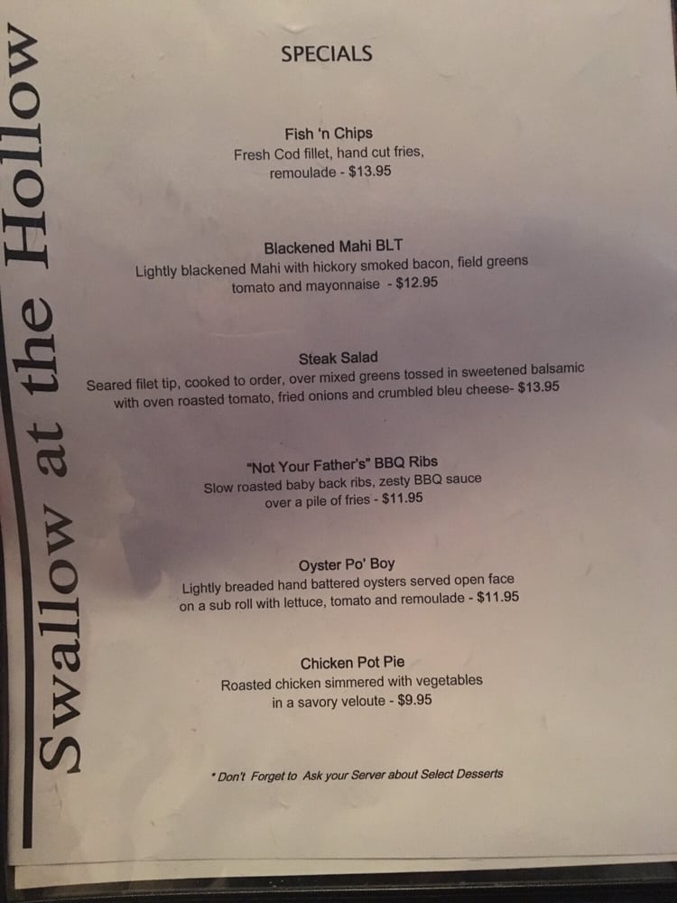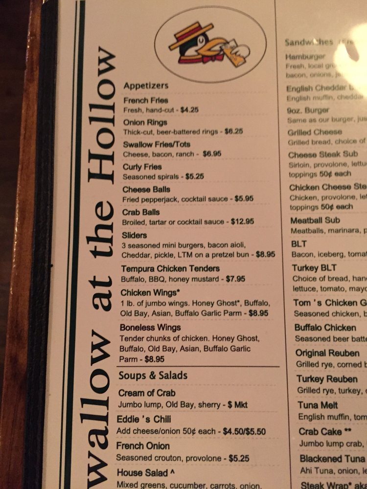 Swallow At the Hollow, a new American pub located in Baltimore, offers a wide range of options for diners. From tasty sliders and cheese balls to hearty soups and salads, there is something for everyone. The steak wrap and turkey BLT sandwich are popular choices, showcasing the diverse menu. Customers rave about the delicious food and great service, making it a must-visit for locals. The casual and divey atmosphere adds to the charm of this establishment, making it a perfect spot for lunch, dinner, or even a late-night bite. With a full bar, outdoor seating, and entertainment options like a jukebox and pool table, Swallow At the Hollow is a versatile and welcoming venue for any occasion. Don't miss out on the tasty dishes and fantastic vibes at this hidden gem in Baltimore.